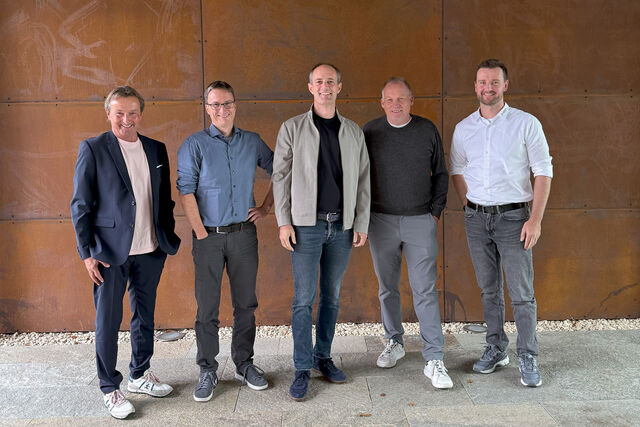 Start frei für Regioheat, von links: Rudi Feil (Gesellschafter), Manuel Hommel (Prokurist GEO DATA GmbH), Christian Wild (Geschäftsführer/Gesellschafter), Andreas Müller (Gesellschafter), Peter Waizenegger (Vorstand e-con AG). Foto: Regioheat