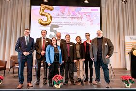5 Jahre Welcome Center Ostwürttemberg - v.l.n.r.: Dr. Joachim Bläse, Landrat Ostalbkreis, Peter Polta, Landrat Landkreis Heidenheim, Nadine Kaiser, Geschäftsführerin Wirtschaftsförderungsgesellschaft Region Ostwürttemberg (WiRO), Prof. Dr. Harald Riegel, Rektor der Hochschule Aalen, Steffen Kohnle, Leiter des Welcome Centers Ostwürttemberg, Susanne Vedder, Wirtschaftsministerium Baden-Württem-berg, Solveigh Gauditz, Referentin Welcome Center Ostwürttemberg, Pascal Cromm, Leiter Akademisches Auslandsamt, Hochschule Aalen Bildquelle: Justin Wild