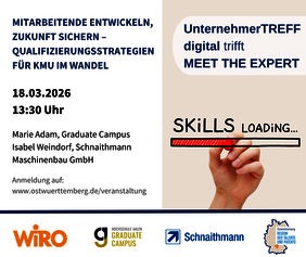Gemeinsam mit dem Graduate Campus der Hochschule Aalen möchten wir Sie zu folgender Veranstaltung einladen: „Mitarbeitende entwickeln, Zukunft sichern – Qualifizierungsstrategien für KMU im Wandel“