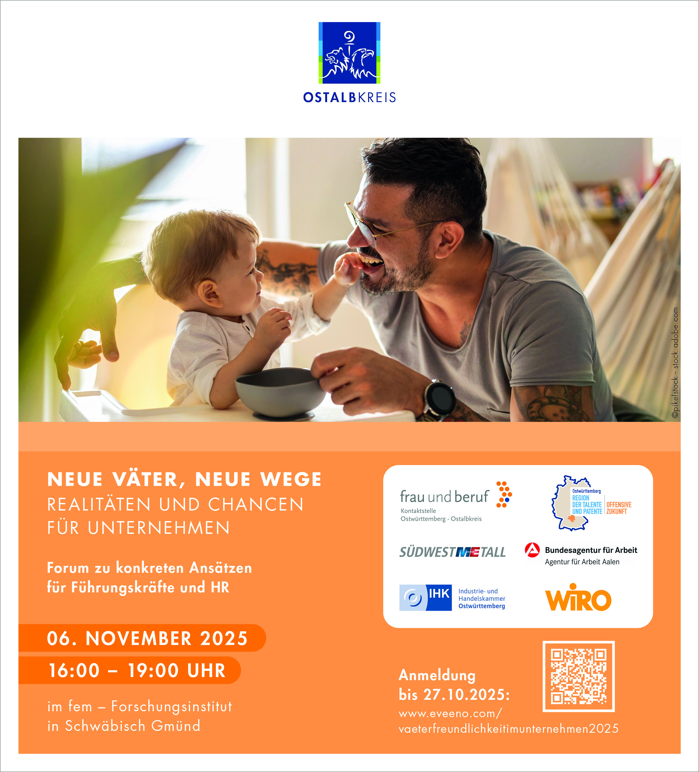Mehr Informationen unter: “Neue Väter, neue Wege – Realitäten und Chancen für Unternehmen.” Forum zu konkreten Ansätzen für Führungskräfte und HR | Kontaktstelle Frau und Beruf Ostwürttemberg
